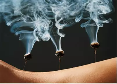 - Прижигание (моксотерапия) – подразумевается не только прижигание в буквальном смысле слова, но и прогревание некоторыми веществами. При прижигании сигарой длительное время сохраняется приятное тепло, не остаётся болевых ощущений.